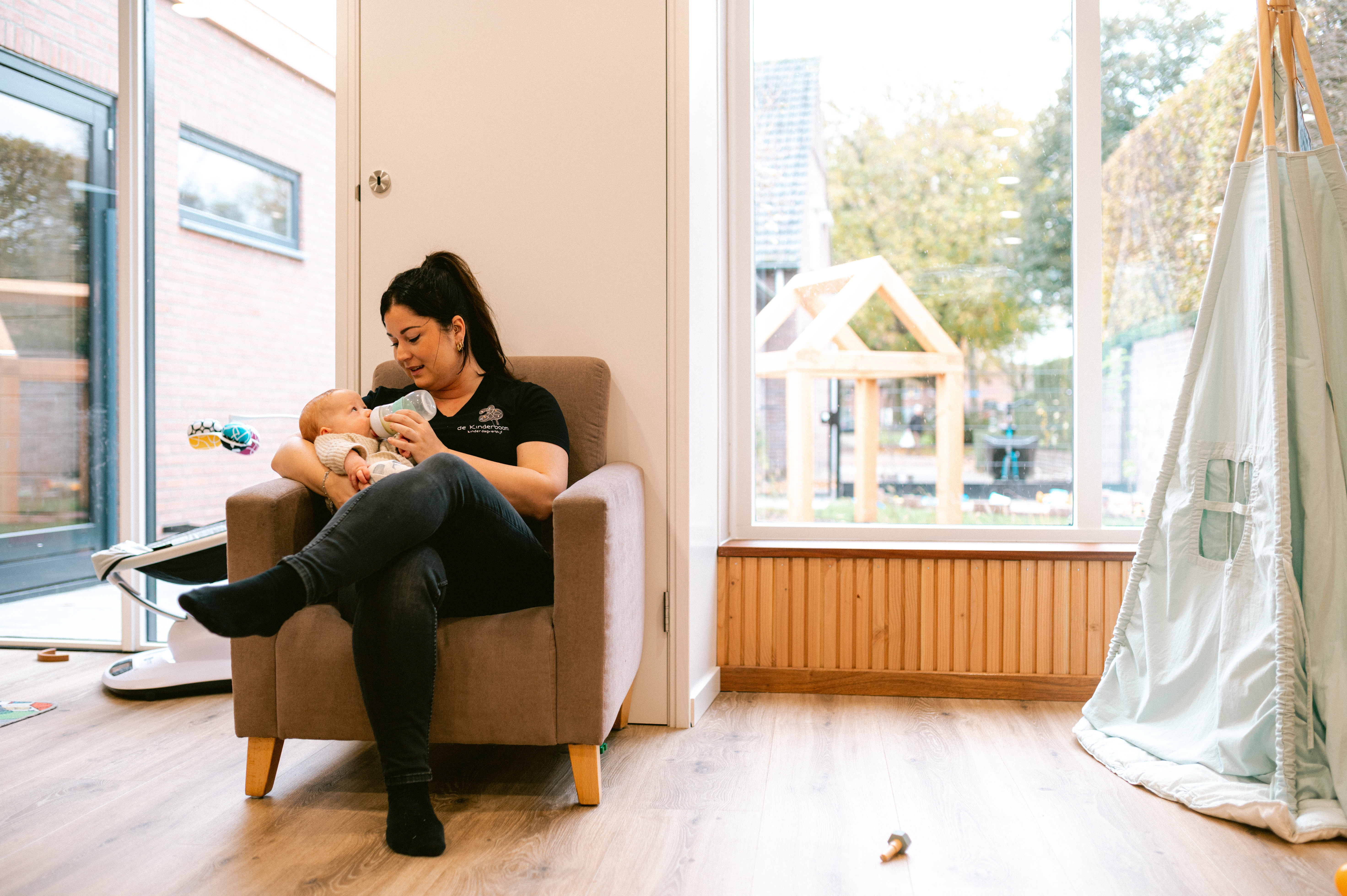De Kinderboom is een kleinschalig kinderdagverblijf die kinderen opvangt van de leeftijd tussen de 0 en 4 jaar. Wij beschikken over 2 ruime groepen waar de kinderen vrij door de groep kunnen bewegen. Omdat wij kleinschalig zijn, kennen al onze pedagogisch medewerkers alle kinderen en ouders. Wij draaien onze hand er niet voor om, om dagelijks naar buiten te gaan met de kinderen. Ook bij minder goed weer is er van alles te ontdekken. Buiten zijn, vrij spelen en onbevangen de natuur ontdekken, helpt kinderen in de ontwikkeling van hun zintuigen, motoriek, sociale vaardigheden en creativiteit.